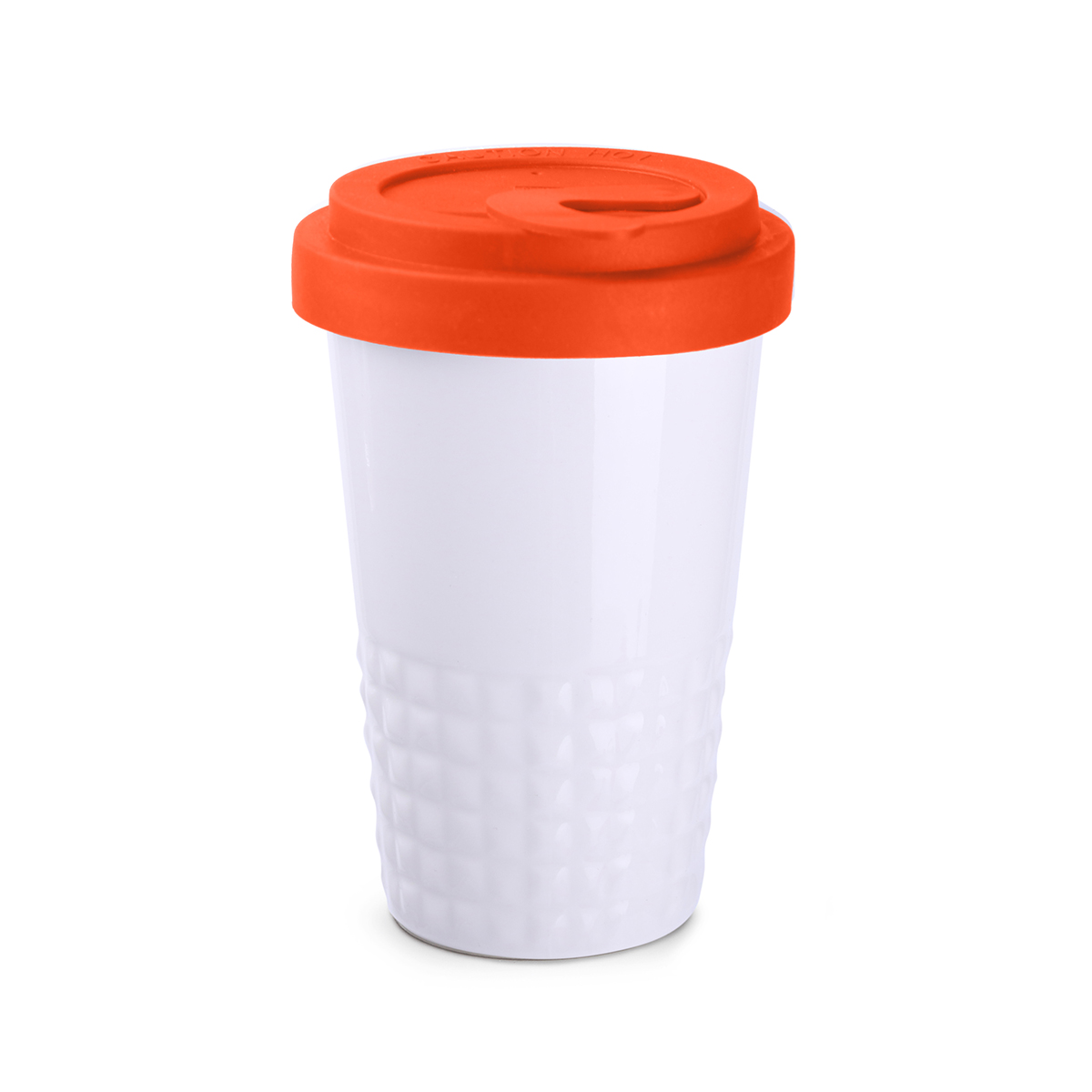 Nowość na rynku ceramiki reklamowej. Subtelne wykończenie dolnej części kubka w formie symetrycznych wypustek. Porcelanowy kubek dwuścienny, zapewniający doskonałą izolację ciepła. Wyjątkowo szczelna przykrywka. Model dla aktywnych. Przykrywka dostępna w następujących kolorach: biały, pomarańczowy 021C, szary Cool Gray 7, granatowy 294C, brązowy 4695C, czarny, różowy 4064C, niebieski 2144C, eucalyptus 5493C, desert sand 2310C